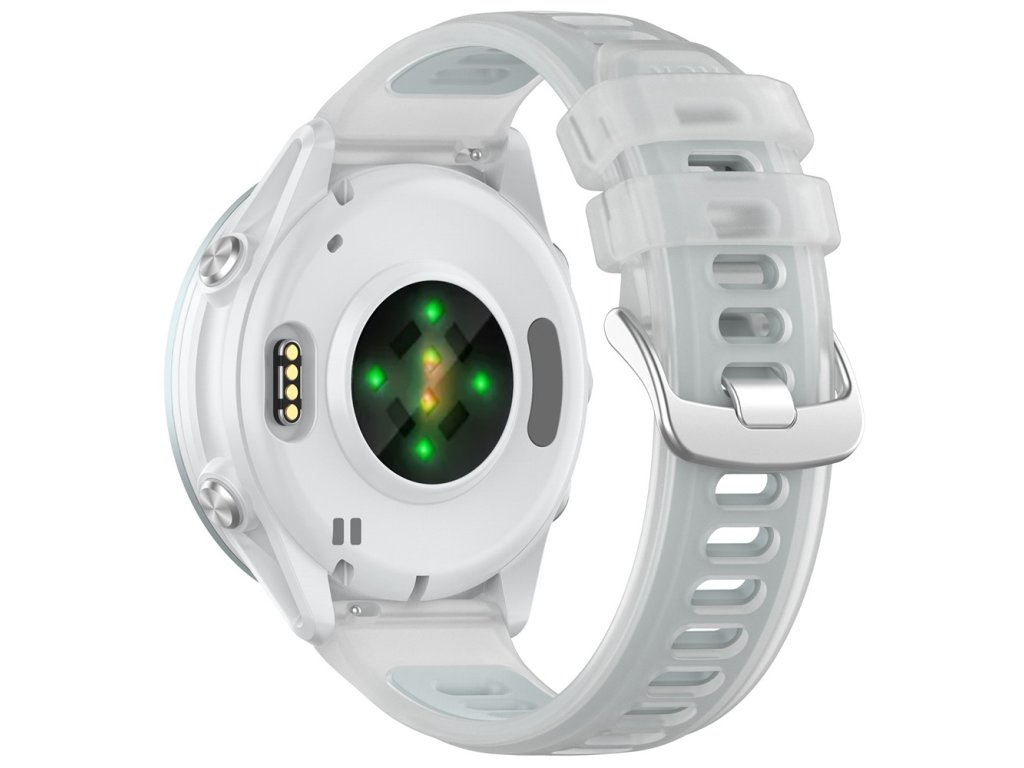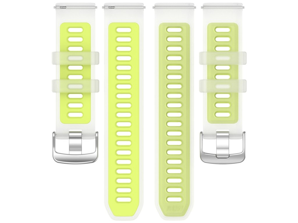 Silikon je odolný vůči potu, vodě i běžnému opotřebení, snadno se čistí a zachovává si barvu i tvar. Díky univerzálnímu uchycení řemínek bez problému spolupracuje s uvedenými modely hodinek a zajistí jisté spojení při tréninku, cestování i v kanceláři.