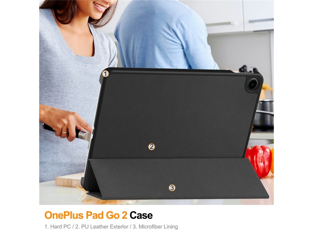 Tablet OnePlus Pad Go 2 je uchycen v plastovém držáku, který je vyroben přesně na míru daného přístroje, nehrozí tedy, že by počítač z pouzdra vypadl. Přístup ke všem ovládacím prvků a konektorům je zajištěn, není tak třeba telefon z pouzdra vyndávat např. pro připojení sluchátek. Pouzdro je vyrobeno z napodobeniny kůže. Obal pro OnePlus Pad Go 2 slouží i jako praktický stojánek.