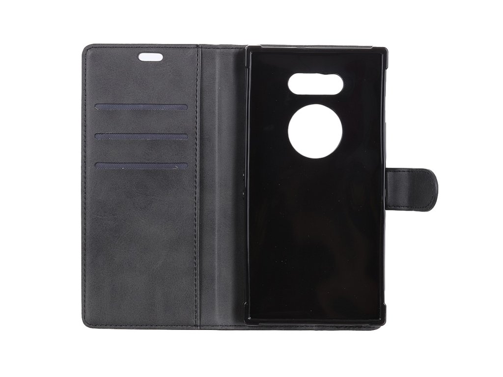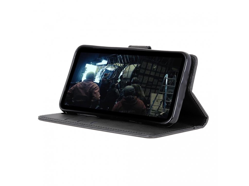Smartphone je uchycen v plastovém držáku, který je vyroben přesně na míru daného telefonu, nehrozí tedy, že by přístroj z pouzdra vypadl. Přístupem je všem ovládacím prvků a konektorům je zajištěn, není tak třeba telefon z pouzdra vyndávat např. pro připojení sluchátek. Zapínání je řešeno magnetkou. Pouzdro je vyrobeno z napodobeniny kůže. Barva vnitřní výstelky se může měnit v závislosti na sérii bez předchozího upozornění.