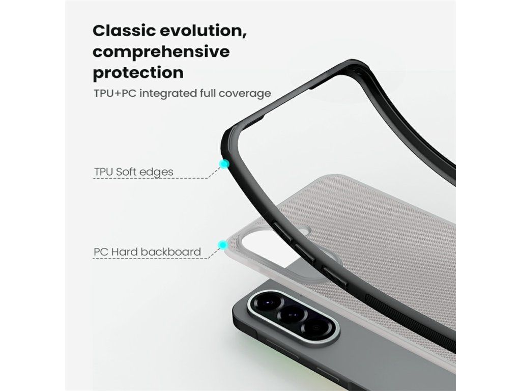 Praktické značkové pouzdro Nillkin vyrobeno z tvrzeného plastu a pryže pro Samsung Galaxy A57 5G. Všechny ovládací prvky jsou přístupné, telefon Samsung Galaxy A57 5G není třeba z pouzdra vyndávat.