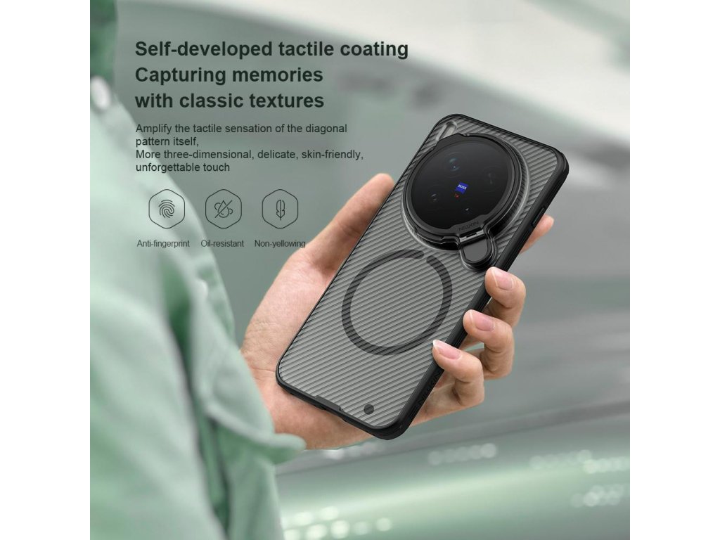 Pouzdro je vyrobeno z pevného plastu, ochrání smartphone vivo X300 Pro před poškrábáním i v případě pádu. Zadní část je vyzdobena krásnou texturou uhlíkových vláken.