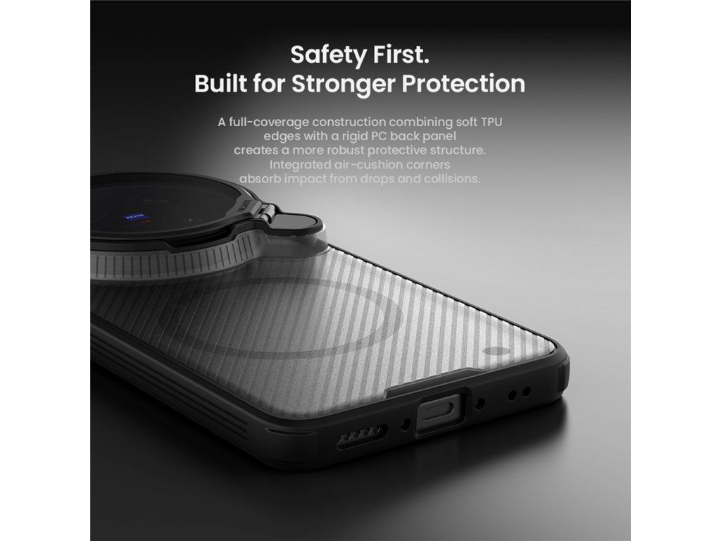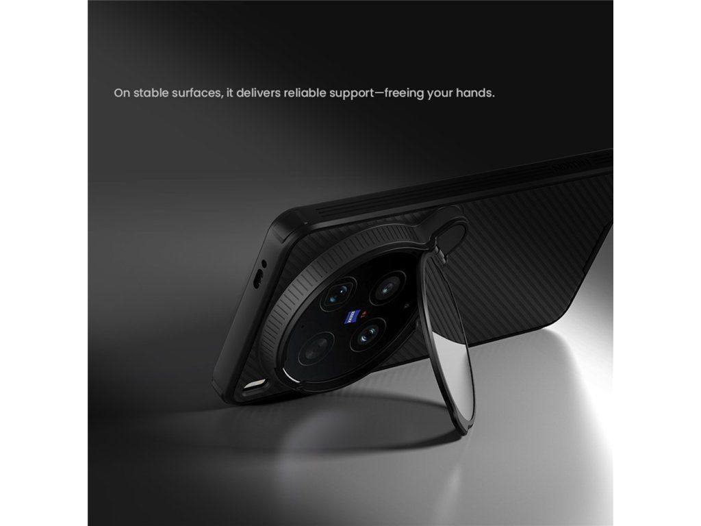 Pouzdro je vyrobeno z pevného plastu, ochrání smartphone vivo X300 Ultra před poškrábáním i v případě pádu. Zadní část je vyzdobena krásnou texturou uhlíkových vláken.