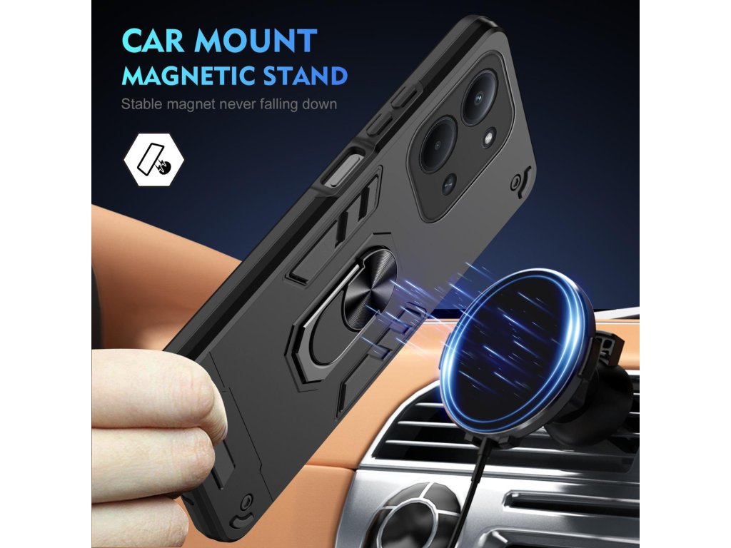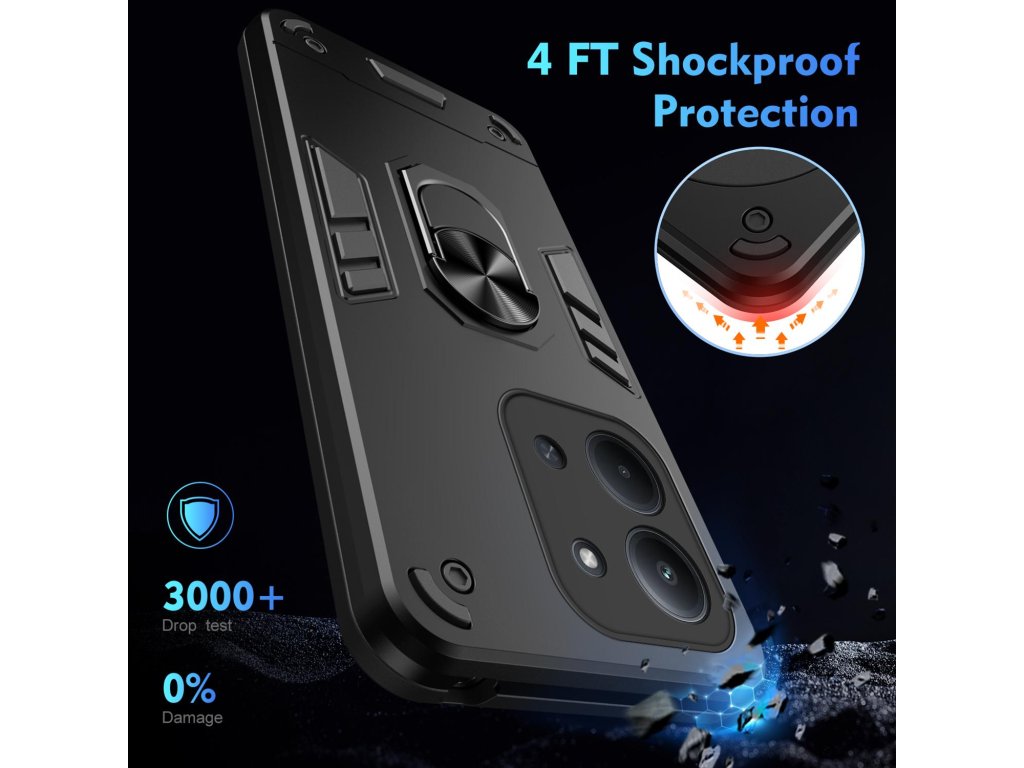 - Držák a stojánek: Vestavěný kovový prstýnek na zadní straně krytu poskytuje pevný úchop při používání telefonu a může být také použit jako stojánek pro pohodlné sledování videí nebo videohovory.