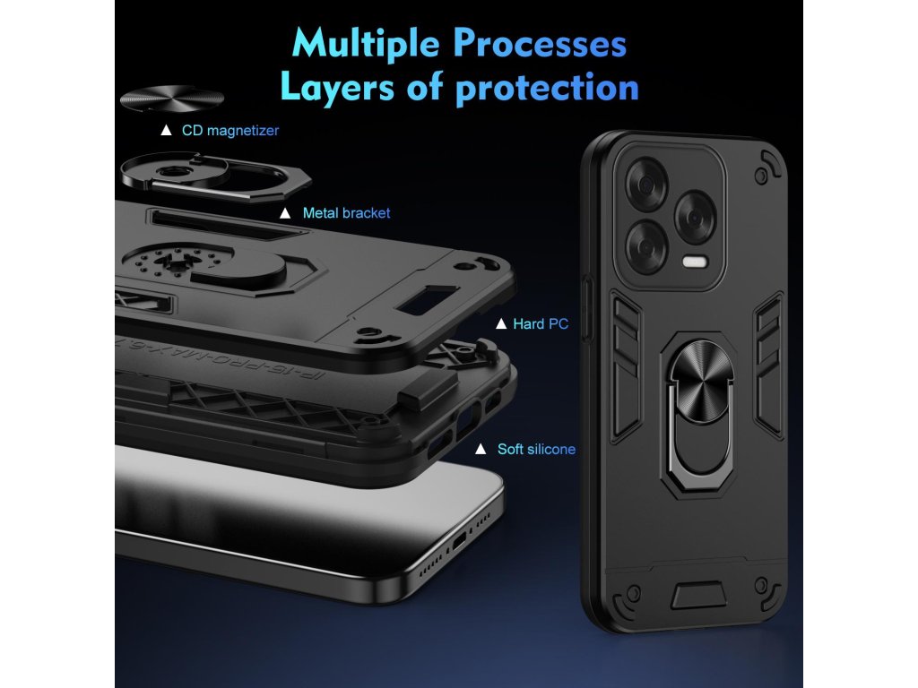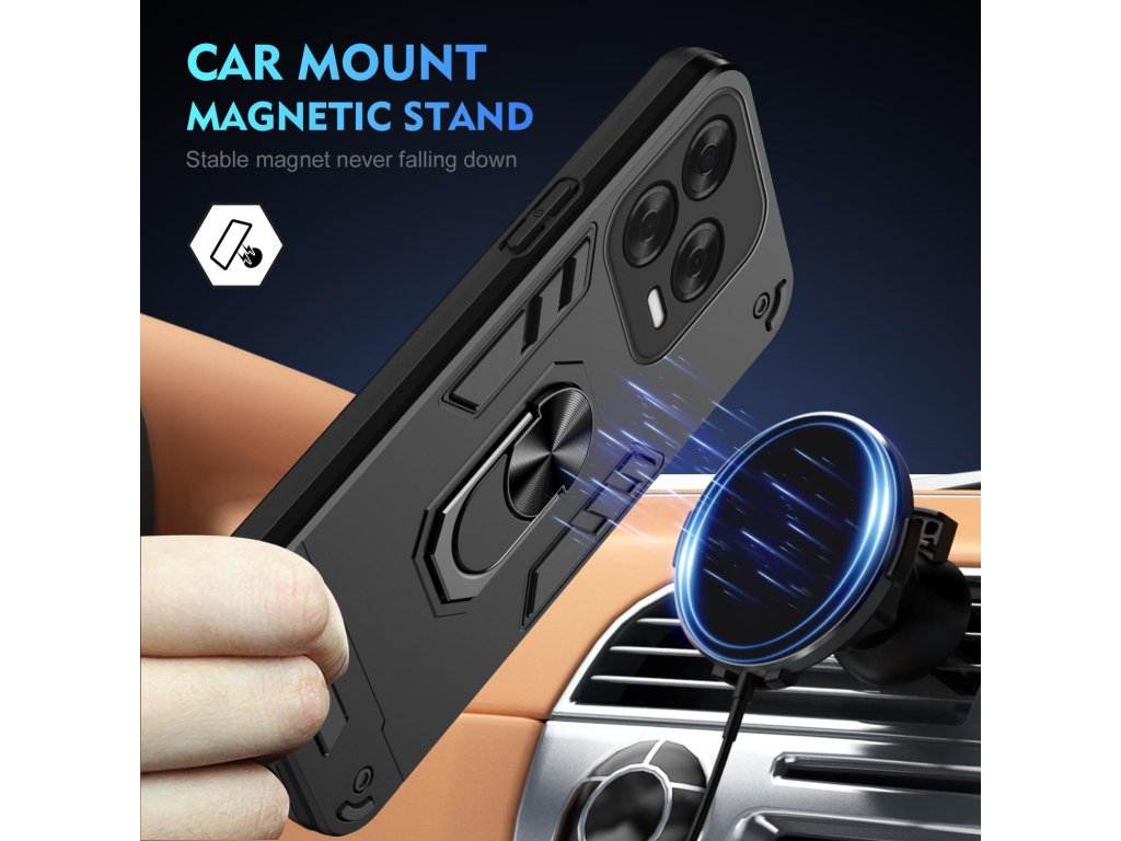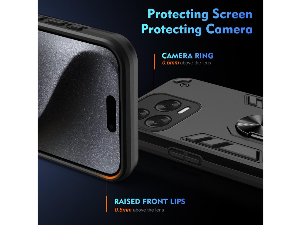 - Držák a stojánek: Vestavěný kovový prstýnek na zadní straně krytu poskytuje pevný úchop při používání telefonu a může být také použit jako stojánek pro pohodlné sledování videí nebo videohovory.
